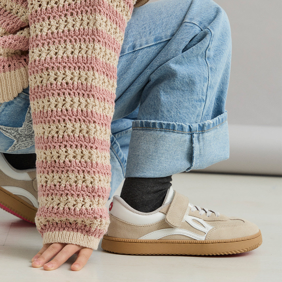 Lejan One® Kids - Beige. The respectful footwear that combines Health, Care and Style. Developed under the supervision of the children's podiatrist Lejancitos, to ensure that the little ones' feet grow as if they were barefoot.